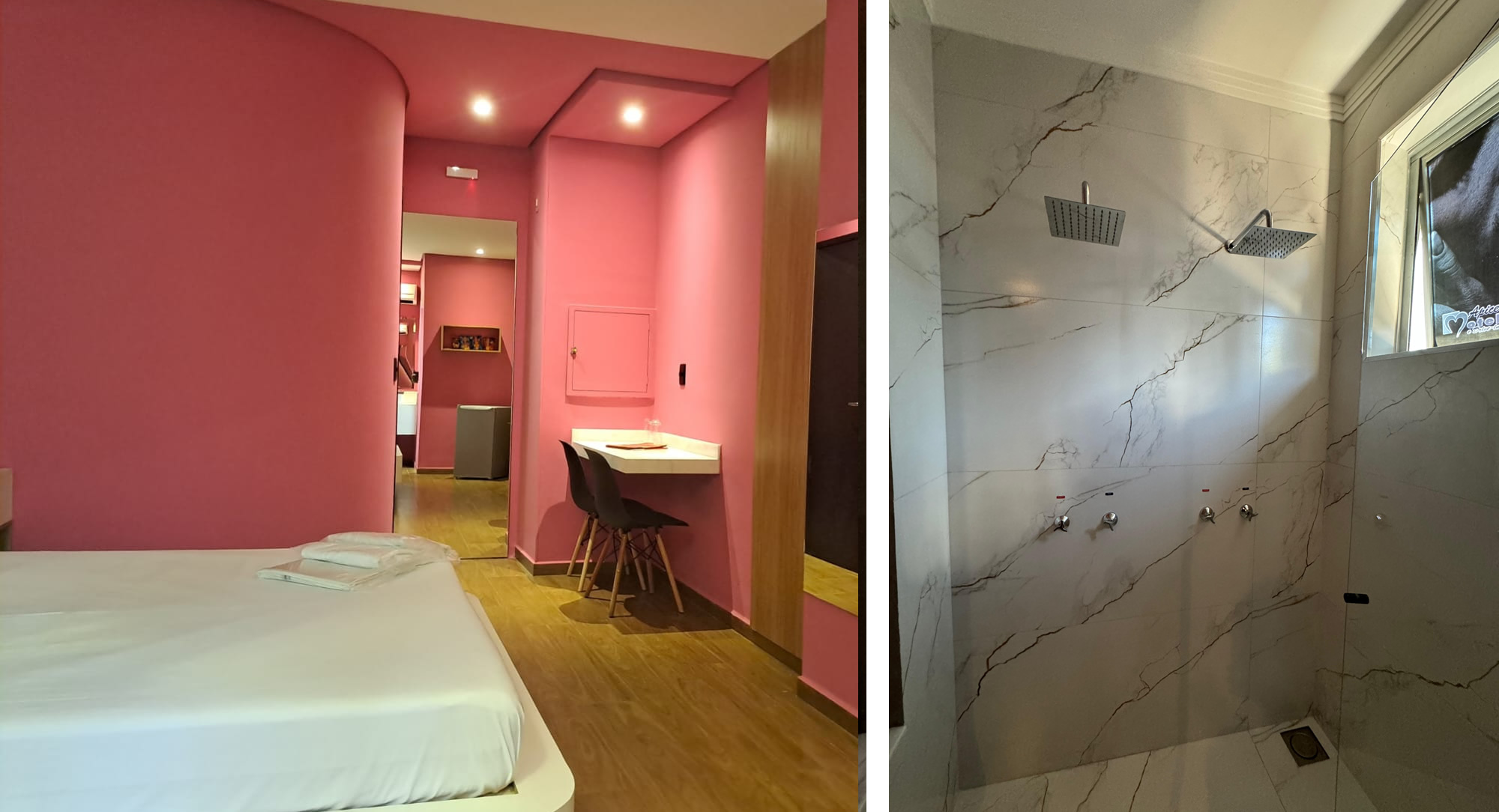 Com um padrão de decoração clássico, a suíte Ápice oferece muito conforto e duchas individuais, que é um diferencial entre as suítes mais simples.
